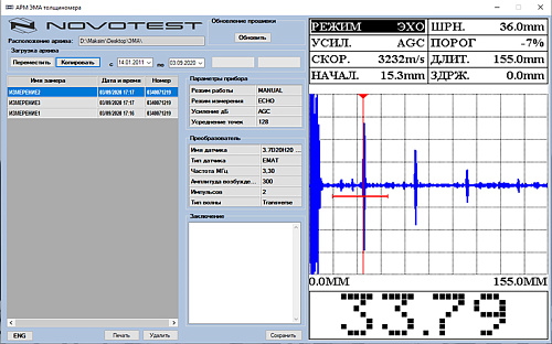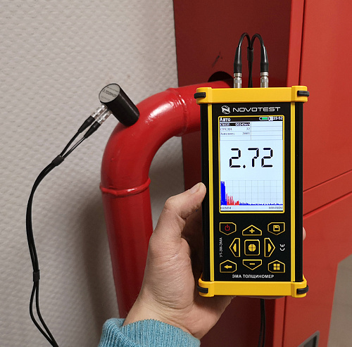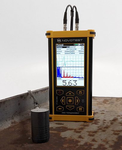 Новый прибор в линейке предприятия - толщиномер NOVOTEST УТ-3М-ЭМА (электромагнитно-акустический) предназначен для определения толщины различный объектов из металлов и сплавов при отсутствии возможности провести предварительную подготовку поверхности (зачистить от покрытия или ржавчины). Толщиномер дает возможность измерять толщину на расстоянии до 6мм от поверхности изделия, как бесконтактно, так и через покрытие при этом нет необходимости использовать контактную жидкость