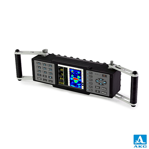 Затем полученные данные представляются на экране прибора и сохраняются в встроенной флеш-памяти. В результате получается наглядный образ сечения объекта контроля (В-тип), где разными цветами (в зависимости от выбранной цветовой схемы) закодирована отражающая способность каждой точки визуализируемого объема. Время сбора данных и вывода на экран образа сечения в одной позиции решетки – 3 сек.