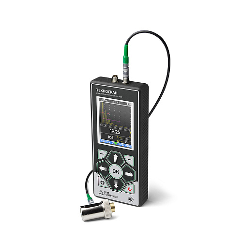 Портативный, полностью цифровой, ультразвуковой дефектоскоп ТЕХНОСКАН общего назначения с массой менее 300 гр. представляет собой простой в настройке и эксплуатации инструмент для контроля в труднодоступных местах и в прочих условиях, когда габариты и вес инструмента являются критичными. Несмотря на малые размеры, обладает хорошим быстродействием, современным морозостойким TFT экраном с тремя цветовыми схемами (в том числе для работы при ярком солнечном свете) и всеми основными функциями современного дефектоскопа: